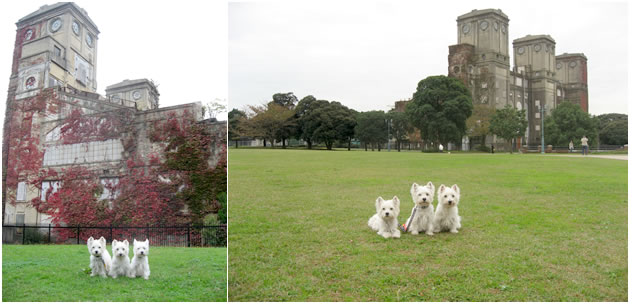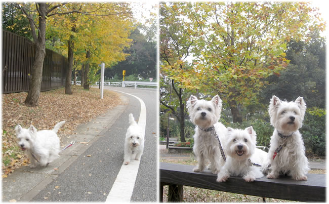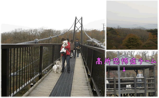 高所恐怖症チームの2ワンコ、1名は橋の手前の休憩所で待っていました^^;