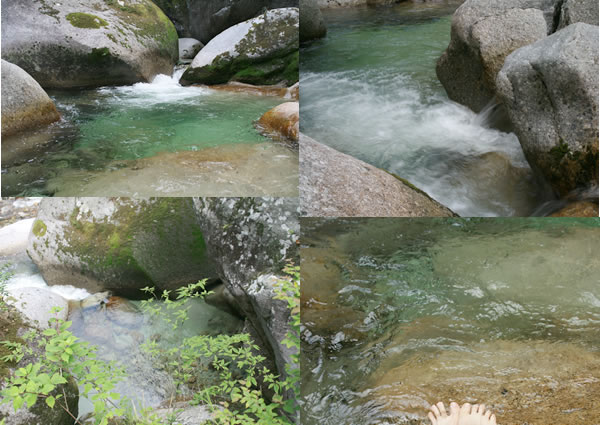 綺麗な水の流れに心が洗われます。水は冷たく、足を入れてると飛び上がってしまうほどです。