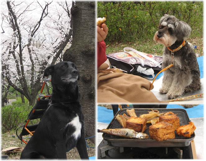 しっかり歩いて、ワンコたちはお家でゆっくりしてもらって、ご近所さんの気の合う仲間と恒例花見酒。