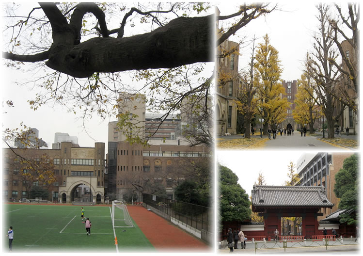 安田講堂に赤門、もう少し早ければ立派な銀杏並木が綺麗だったことでしょう。