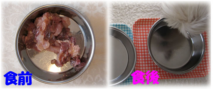 今日は鶏肉、食後のお皿には顔が映るほど、ピッカピカ!