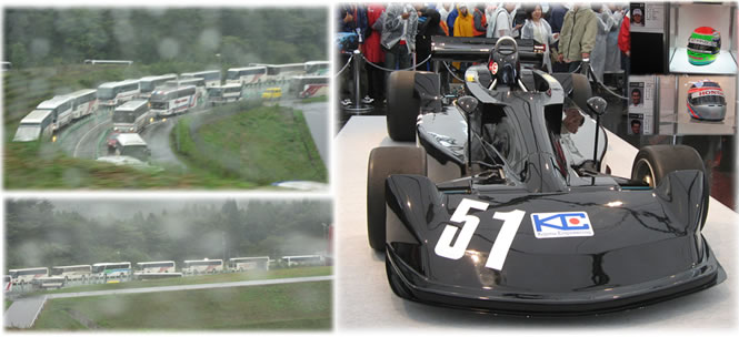 生憎の天候、観客の車入場禁止のため、シャトルバスに乗って富士スピードウェイ