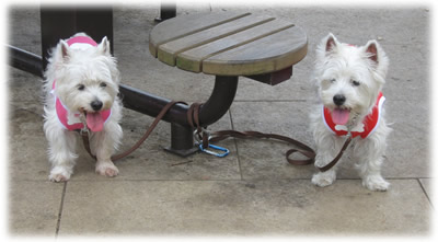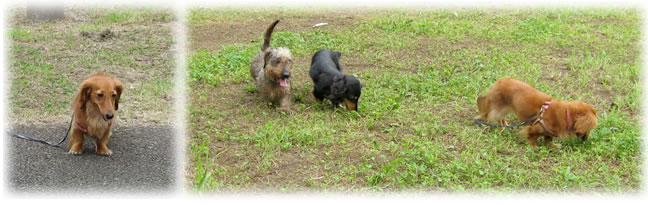 散歩途中でアイスを食べてワンコたちはご満悦。