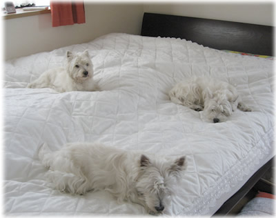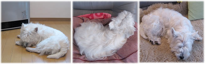 ふわふわなベッドの上に3ワンコが寝転んでしまいました。