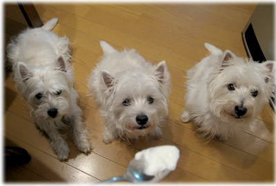 貰えるものをきちんと把握している、賢い?3ワンコです。