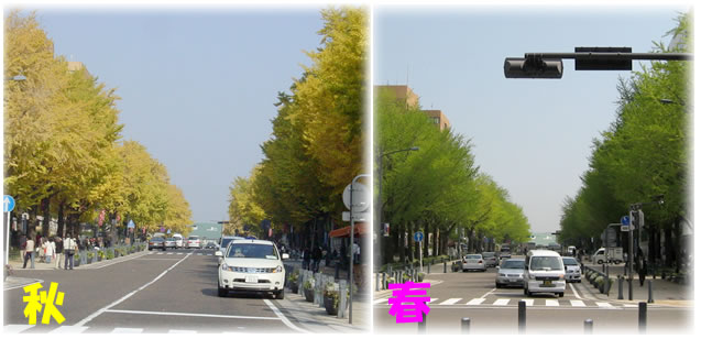 秋、銀杏並木が黄色く染まるとき、大変賑わう日本大通り。