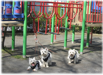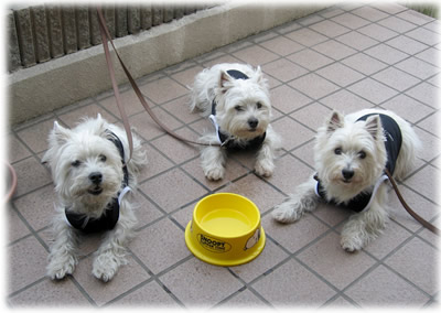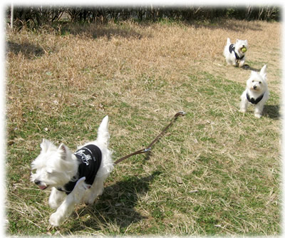 「じゃあねぇ」と主人に3ワンコを任せると、モナコはいつまでも