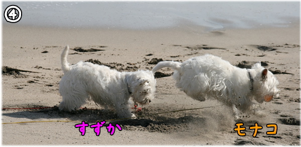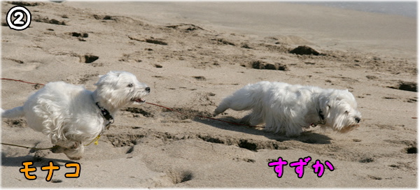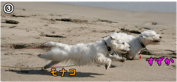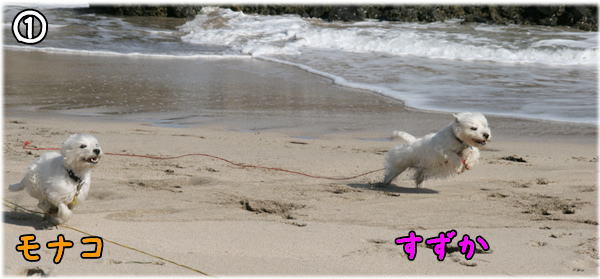 ルマンとすずかは海が大好き、元気良く遊びます。