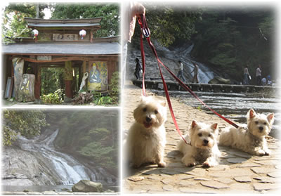 変わった門をくぐって、少し下って行くと見事な滝が迎えてくれました。