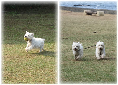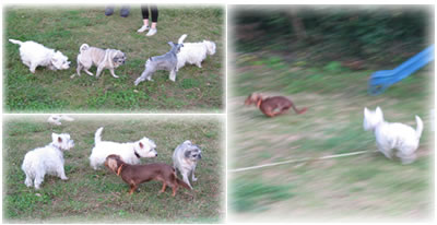 ドッグランでお友達とご挨拶した後、追いかけっこをしました。