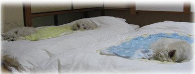 すっかり寛ぎ、布団の上でぐっすり寝てしまいました。