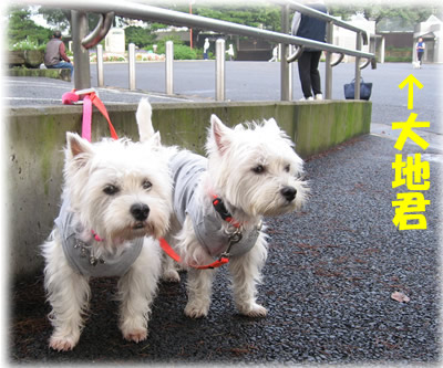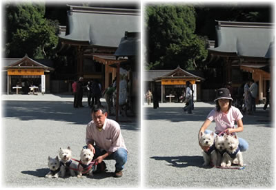 仕方がないので、「若宮」の前でめったにないワンコとの撮影。