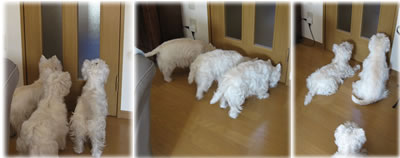 3ワンコは点検中、「誰が来たのかしら?」と気になって仕方がありません。